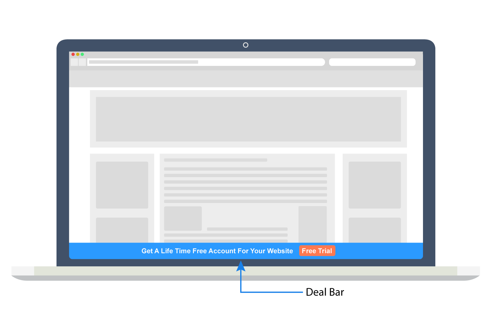 With ZNI's Deal Bar you can run deals site wide with just one click. This bar can be put on the top or at the bottom of the page depending upon your website design. This bar also carries a CTA (Click-To-Action) button for better deal conversion.